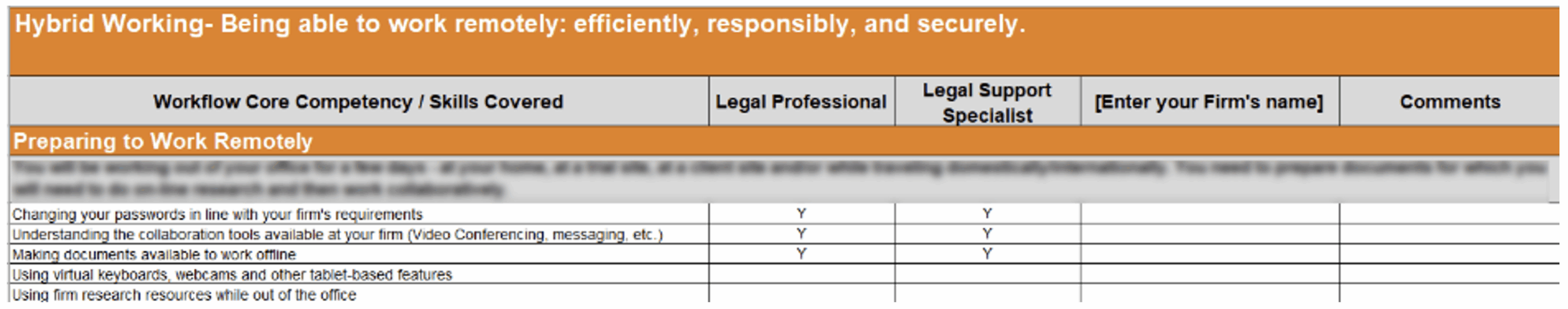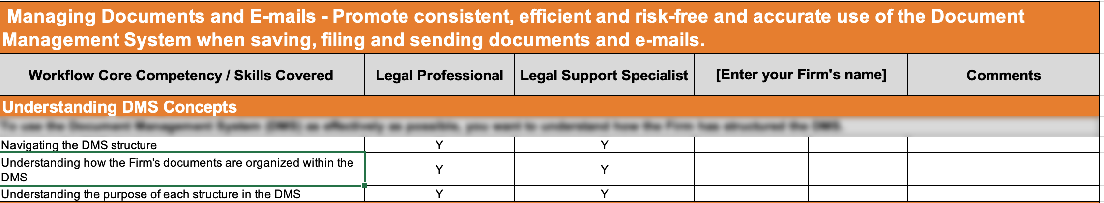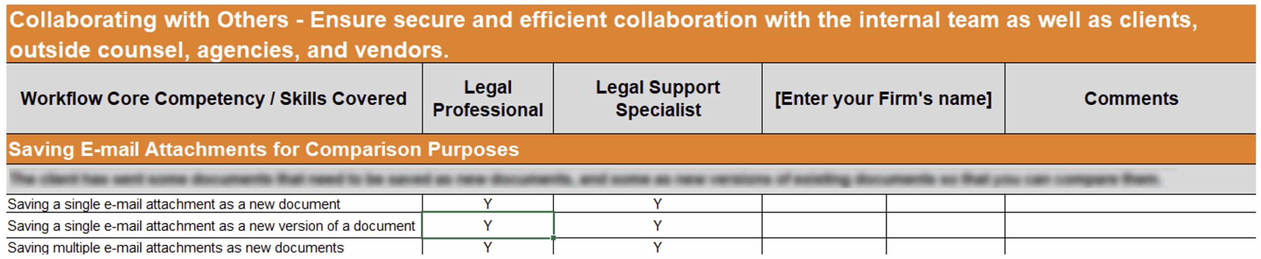 Each core competency contains two distinct paths: one defining attorney (or billable staff) core competencies and one defining the core competencies for support staff, addressing the specific needs of these two important levels of your organization.