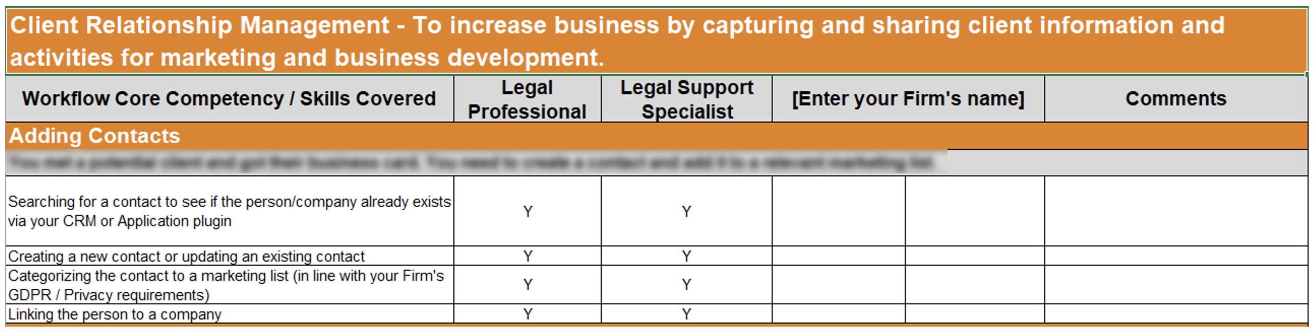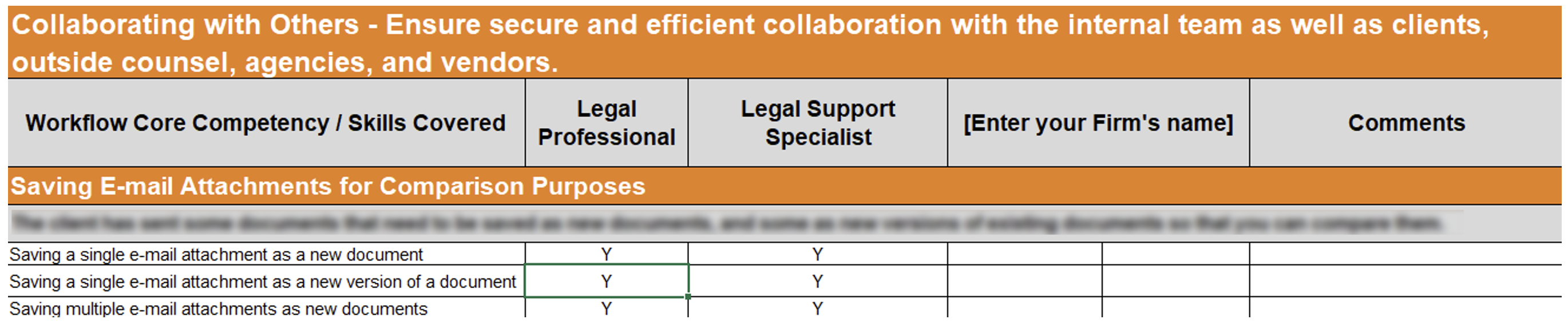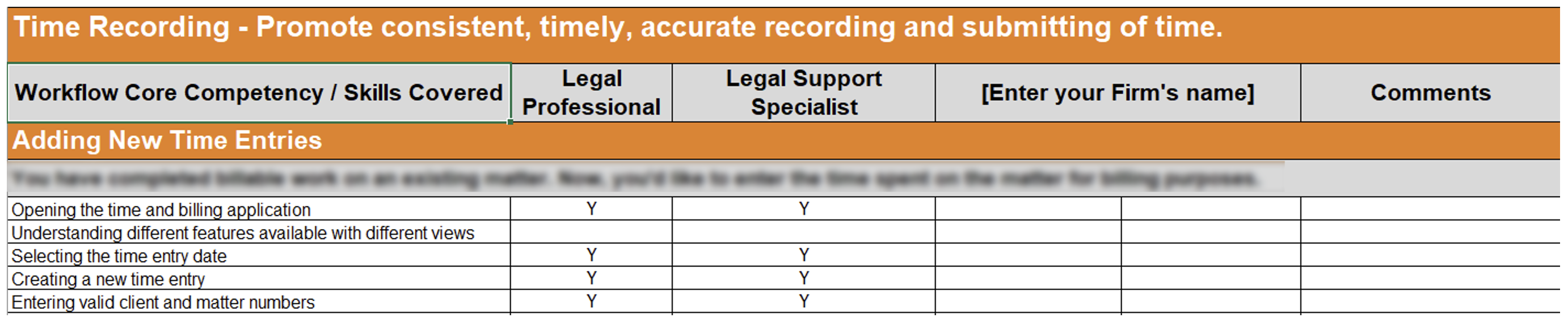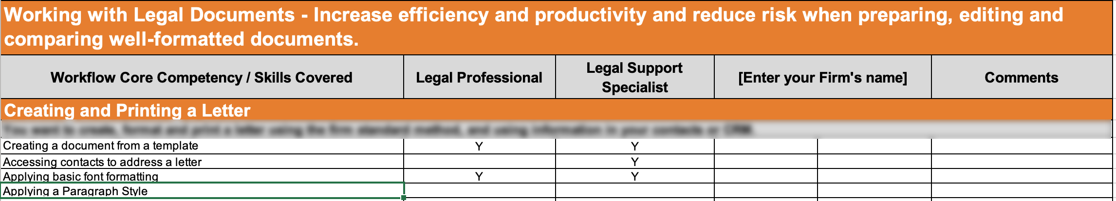 Each core competency contains two distinct paths: one defining attorney (or billable staff) core competencies and one defining the core competencies for support staff, addressing the specific needs of these two important levels of your organization.